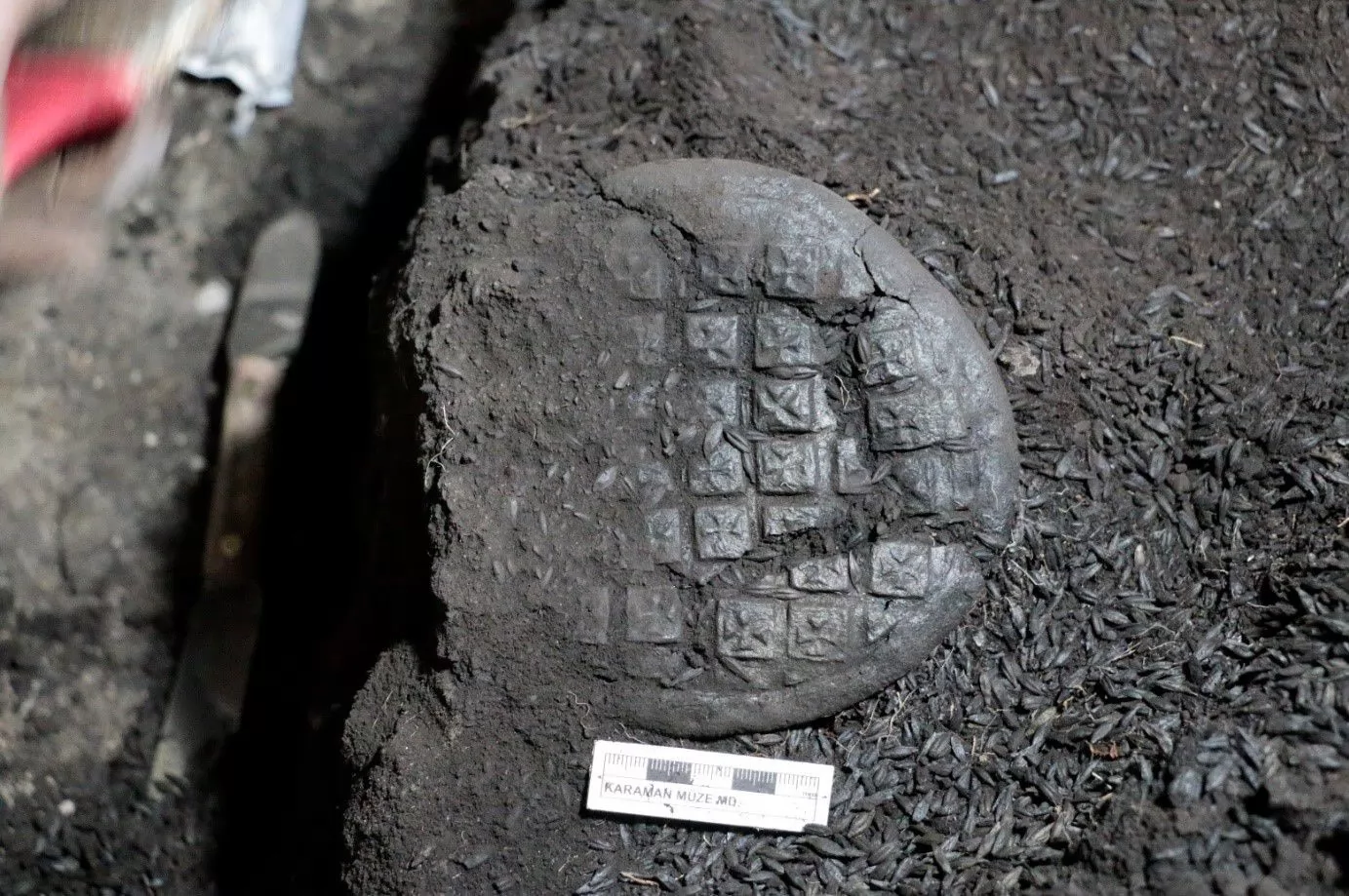 Karaman’ın Ermenek ilçesine bağlı Topraktepe Antik Kenti’nde sürdürülen arkeolojik kazılarda, yaklaşık 1300 yıllık olduğu değerlendirilen bezemeli arpa ekmekleri keşfedildi. Karaman Valiliği tarafından yapılan açıklamada, 5 adet karbonlaşmış ekmeğin tespit edildiği bildirildi.