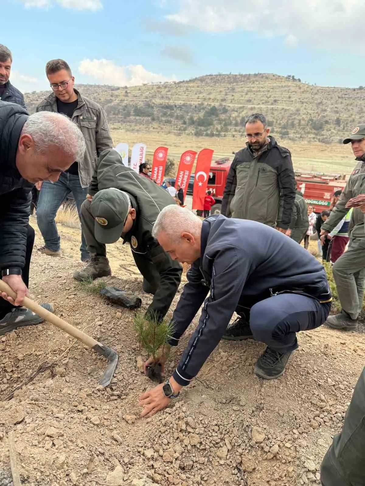 Konuşmaların ardından, Vali Mehmet Fatih Çiçekli ve beraberindeki heyet, şehitler anısına çam fidanlarını toprakla buluşturdu. Etkinlik kapsamında “11 Kasım Hava Şehitleri Ağaçlandırma” yazılı tabela da alana dikildi.