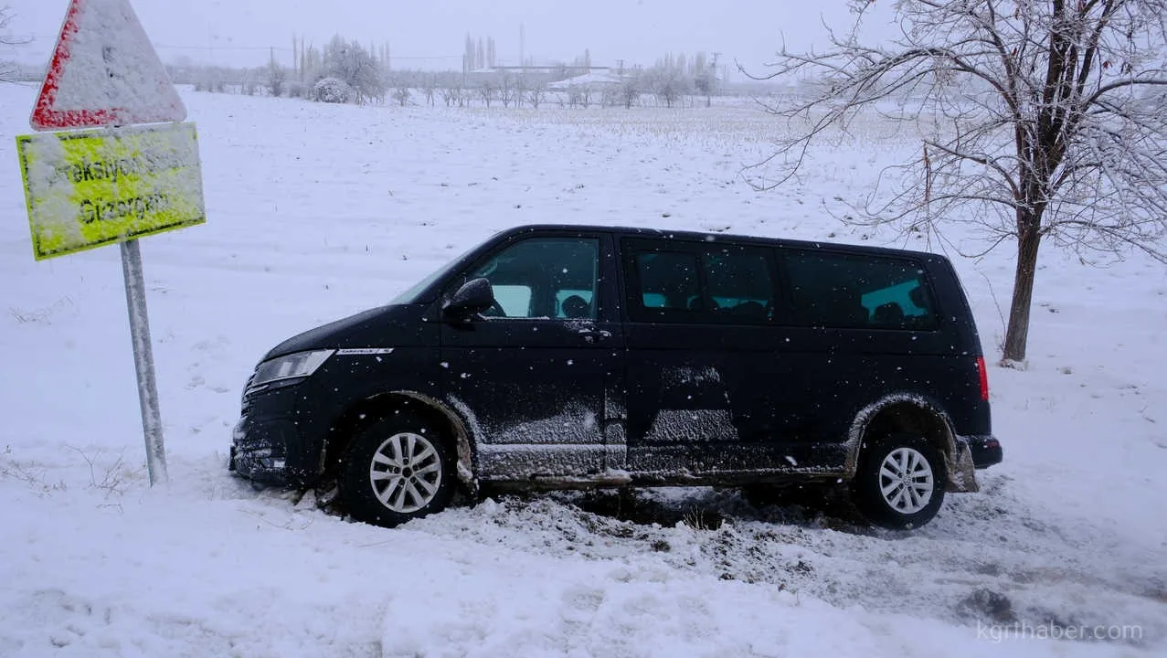 Karaman’da kar yağışı nedeniyle kayganlaşan yolda sürücüsünün direksiyon hakimiyetini kaybettiği minibüs şarampole indi. Kazada yaralanan olmadı.