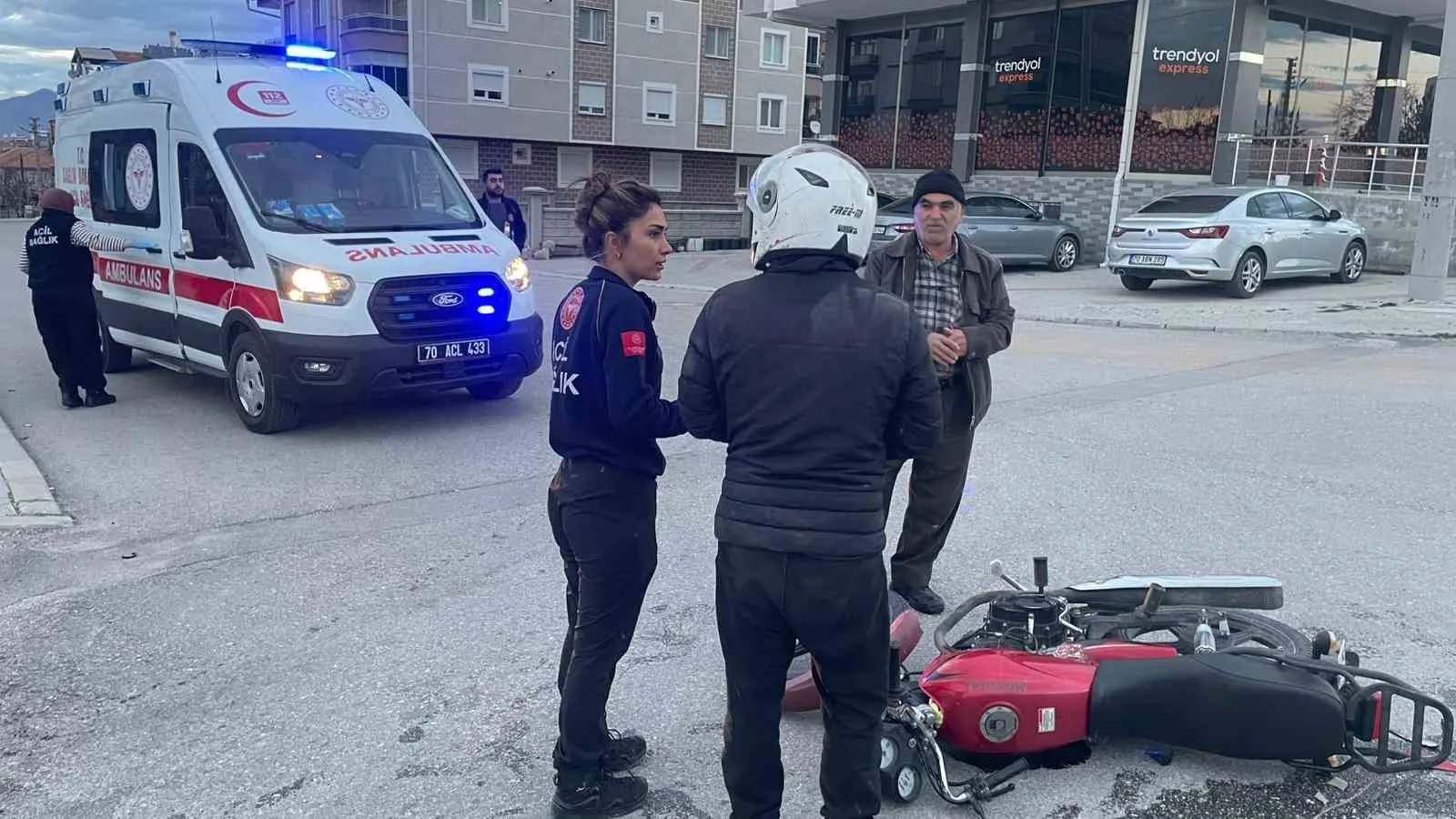 Karaman’da motosikletin cipe arkadan çarpması sonucu meydana gelen trafik kazasında sürücü yaralandı.