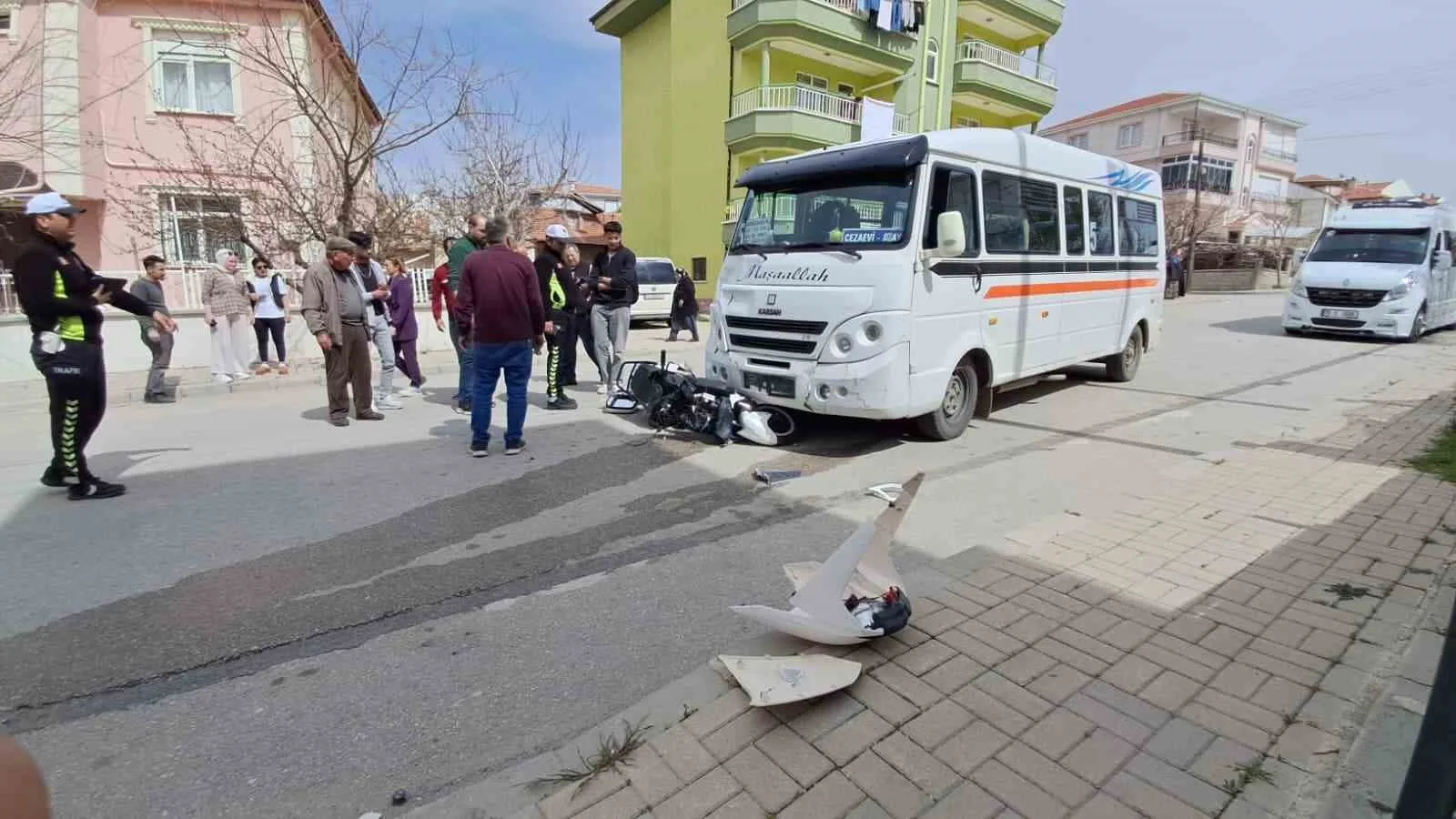 Karaman’da kavşakta minibüs ile motosikletin çarpışması sonucu meydana gelen kazada motosiklet sürücüsü yaralandı. Yaralı hastaneye kaldırıldı.